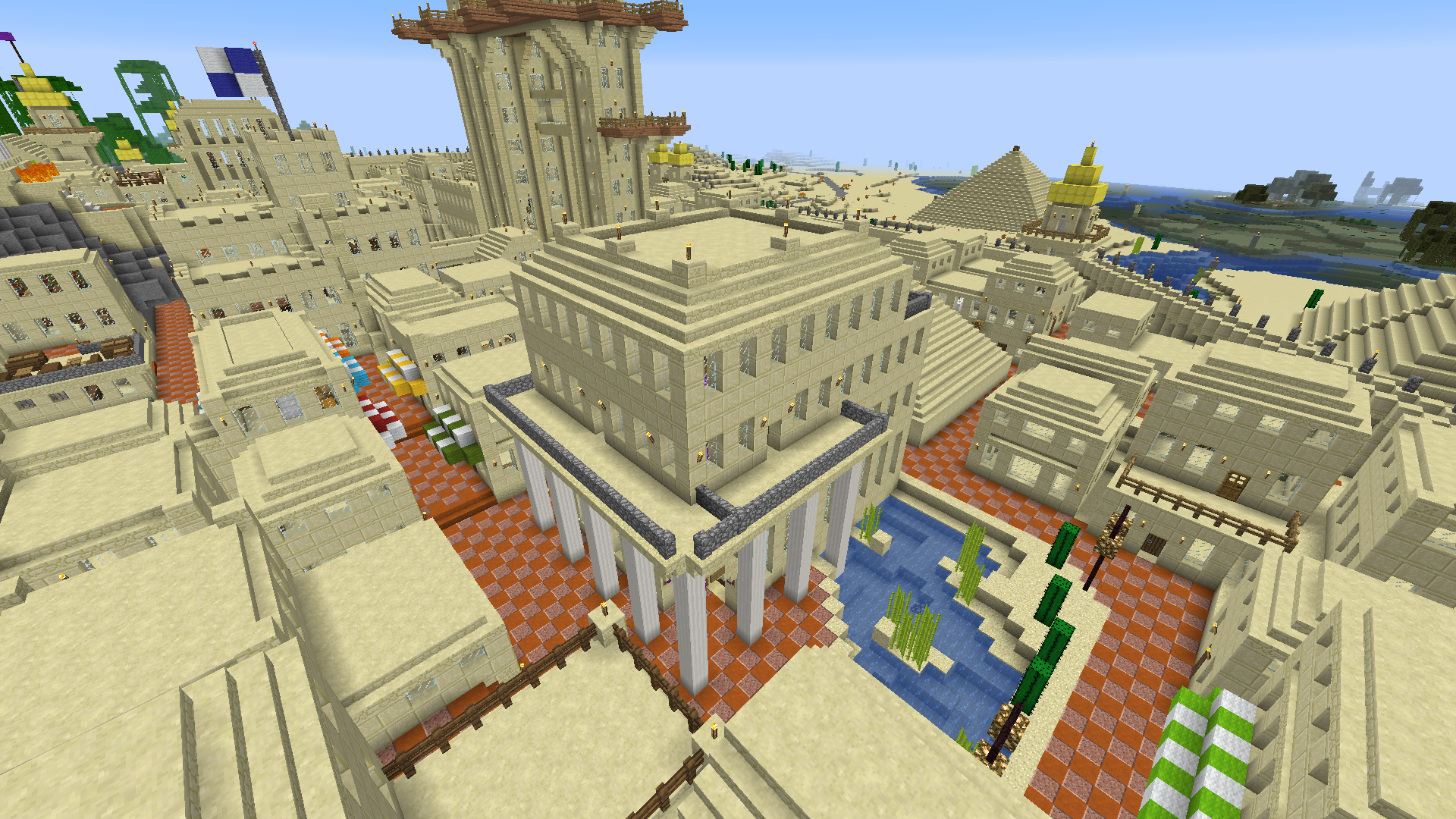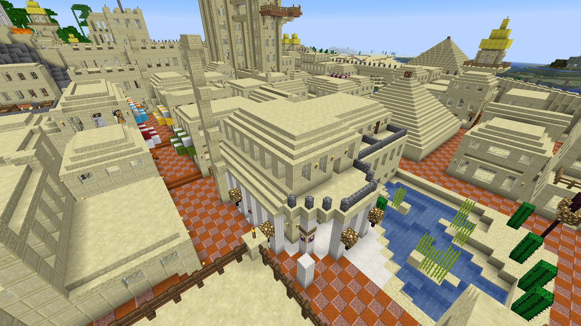 After my updates in Imperial City, I moved on to Agrazahn. I wanted to add a sky-scraper-esque building here, but was limited on height by the Skyport. I managed to build a small sky-scraper for the headquarters of DESERTCO, my conglomerate “shady” business.