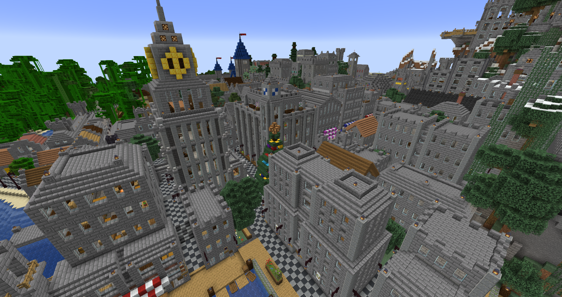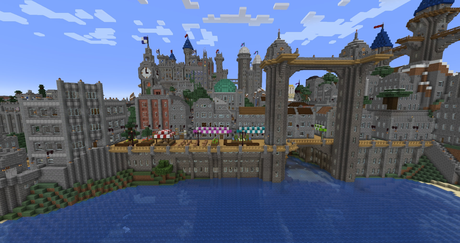Imperial City boasts three fully-functioning City Gates, all of which are run by redstone. Each gate can be put into regular mode where a switch opens and closes it, but the also have a fully automated mode where they close automatically at sundown and reopen at sunrise.