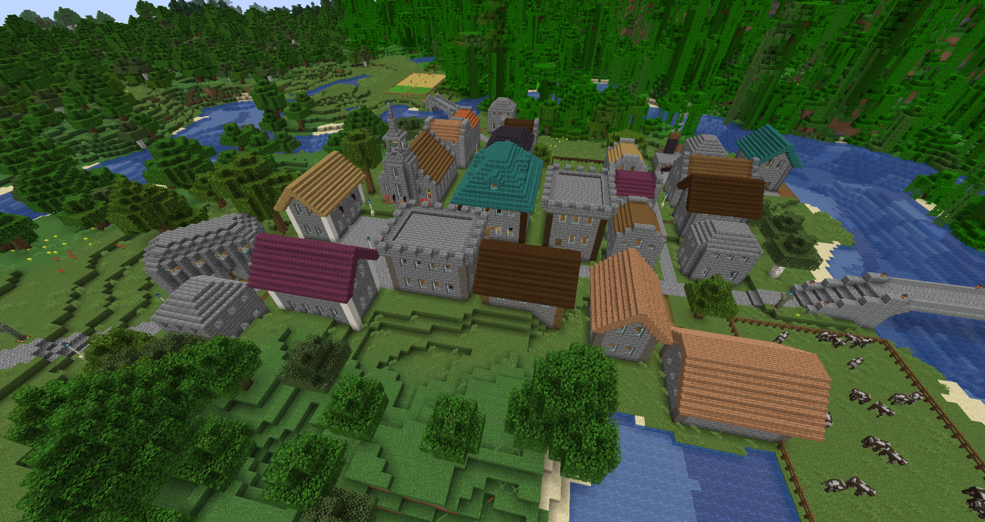 The South Province consists of a large city, two NPC villages, and a massive prison built by my friend Perry. Southron is constructed almost entirely of quartz, earning it the nickname “The White City”. The White Palace in Southron is my single largest stand-alone structure. Also in Southron is a large ship in the harbor built by my friend Chas.