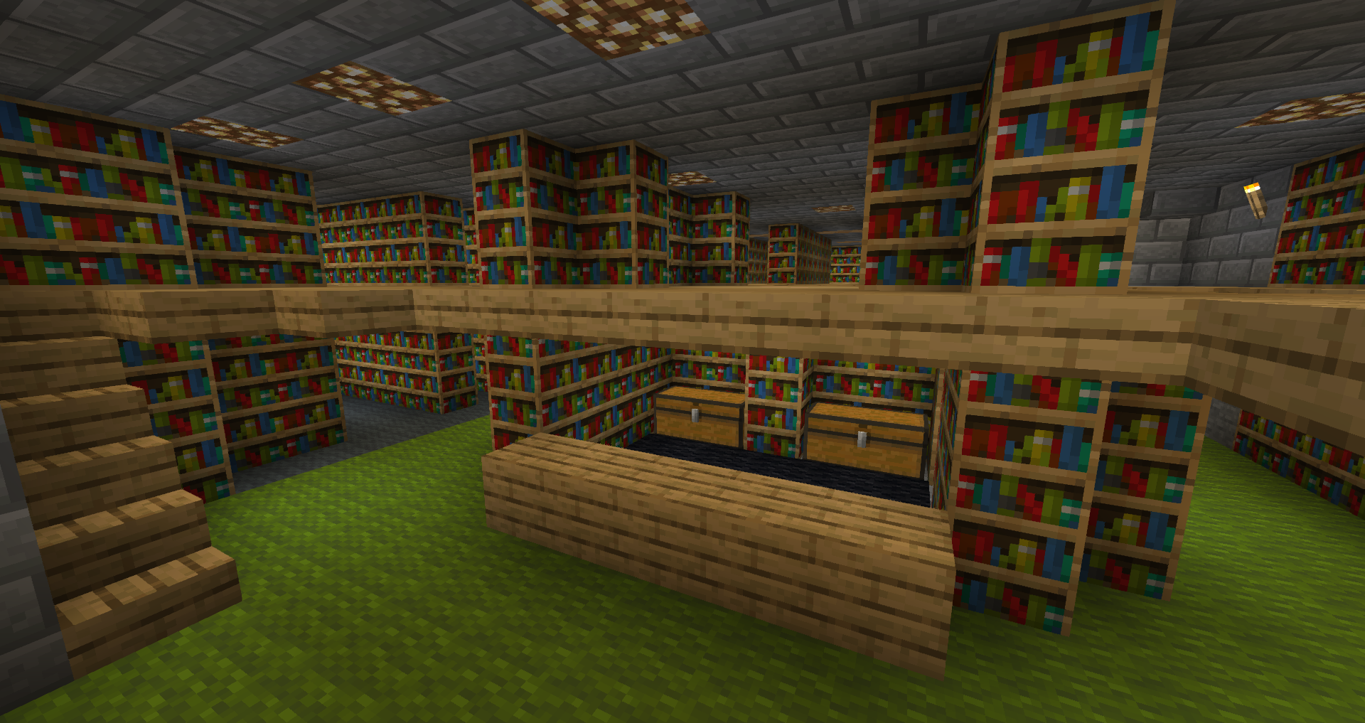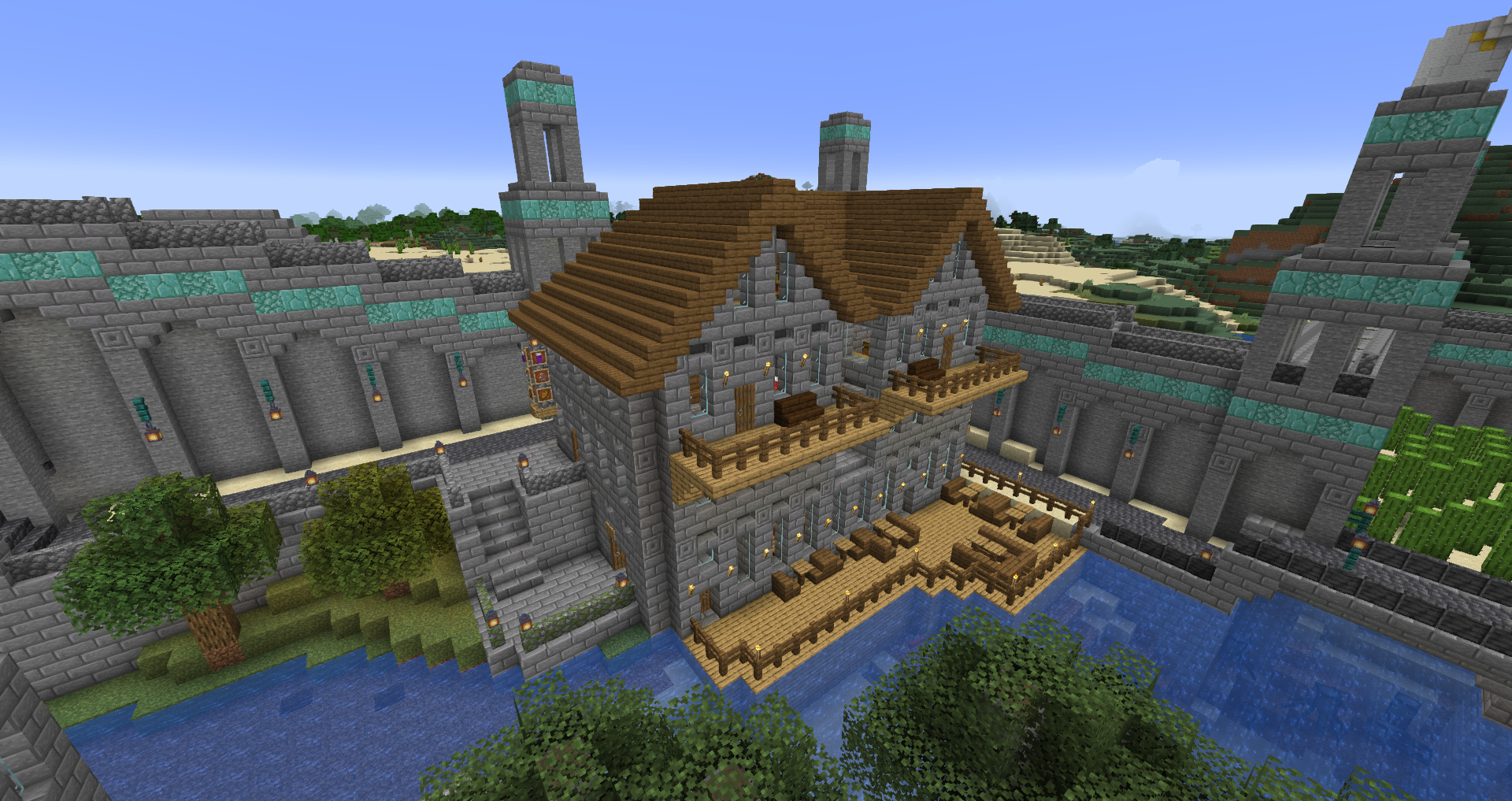 While exploring the depths beneath the city, I discovered my first Stronghold and incorporated it into the design with a secret hidden entrance at the bottom of the city. I originally referred to it as the Sagehold, until I built the current Sagehold on the hill above the city.