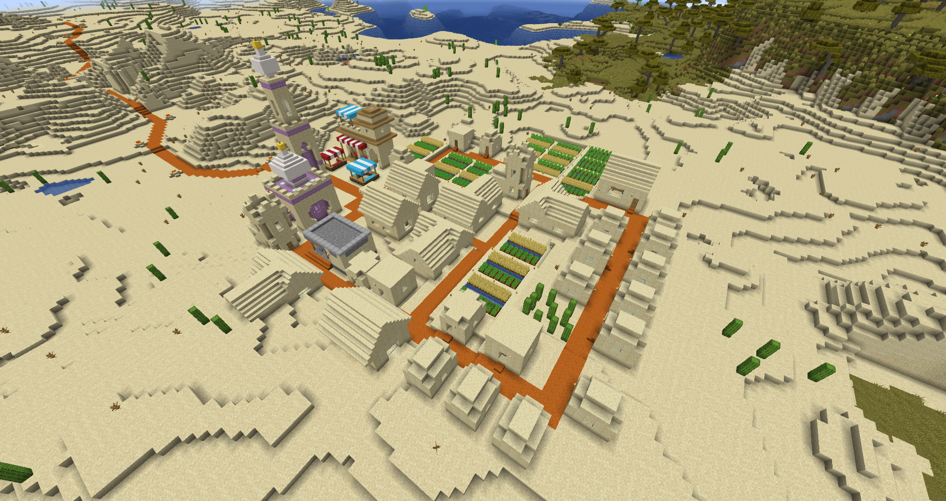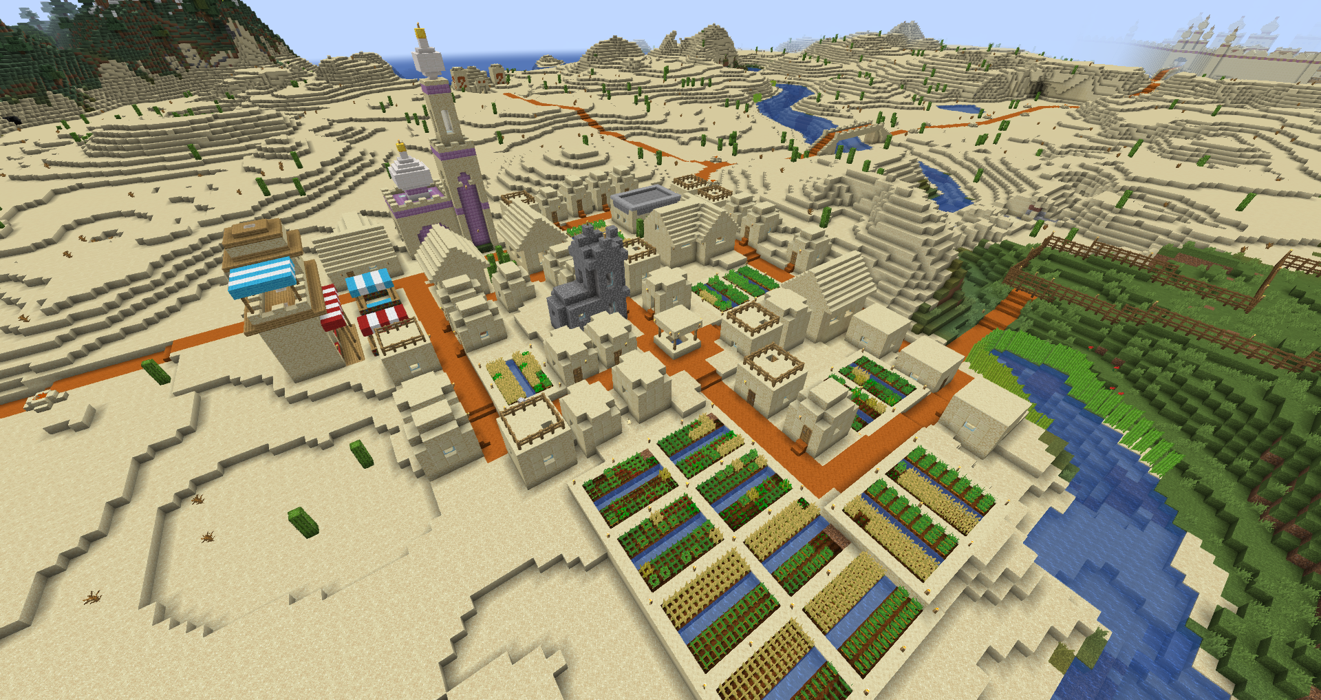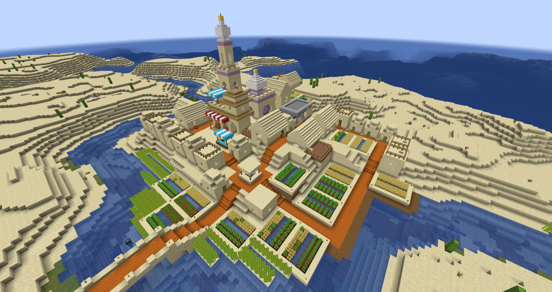 The city is a small island enclosed by a wall on the edge of the desert. The nation also contains three upgraded NPC villages.